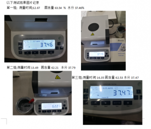 產(chǎn)品狀態(tài);重量測試溫度測試時間固含量結(jié)果水分結(jié)果