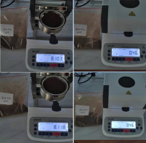 1、測試陶瓷粉末:為了使測試過程中將陶瓷粉末烘干烘透,我們將陶瓷粉末分散開來,以便溫度能滲透進陶瓷粉末內部。取8克多陶瓷粉末撒于不銹鋼托盤中,用鑷子將陶瓷粉末平鋪均勻,為使陶瓷粉末經(jīng)過高溫度加熱后能夠徹底烘干,我們將溫度設置在105℃,按“START”鍵開始測試,1分鐘37秒后檢測結束,檢測數(shù)據(jù)顯示0.30%;