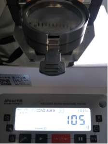 第二步設(shè)定下溫度。就設(shè)定105℃,溫度太高會(huì)把雞精烤化。溫度太低會(huì)影響雞精的測量時(shí)間。
