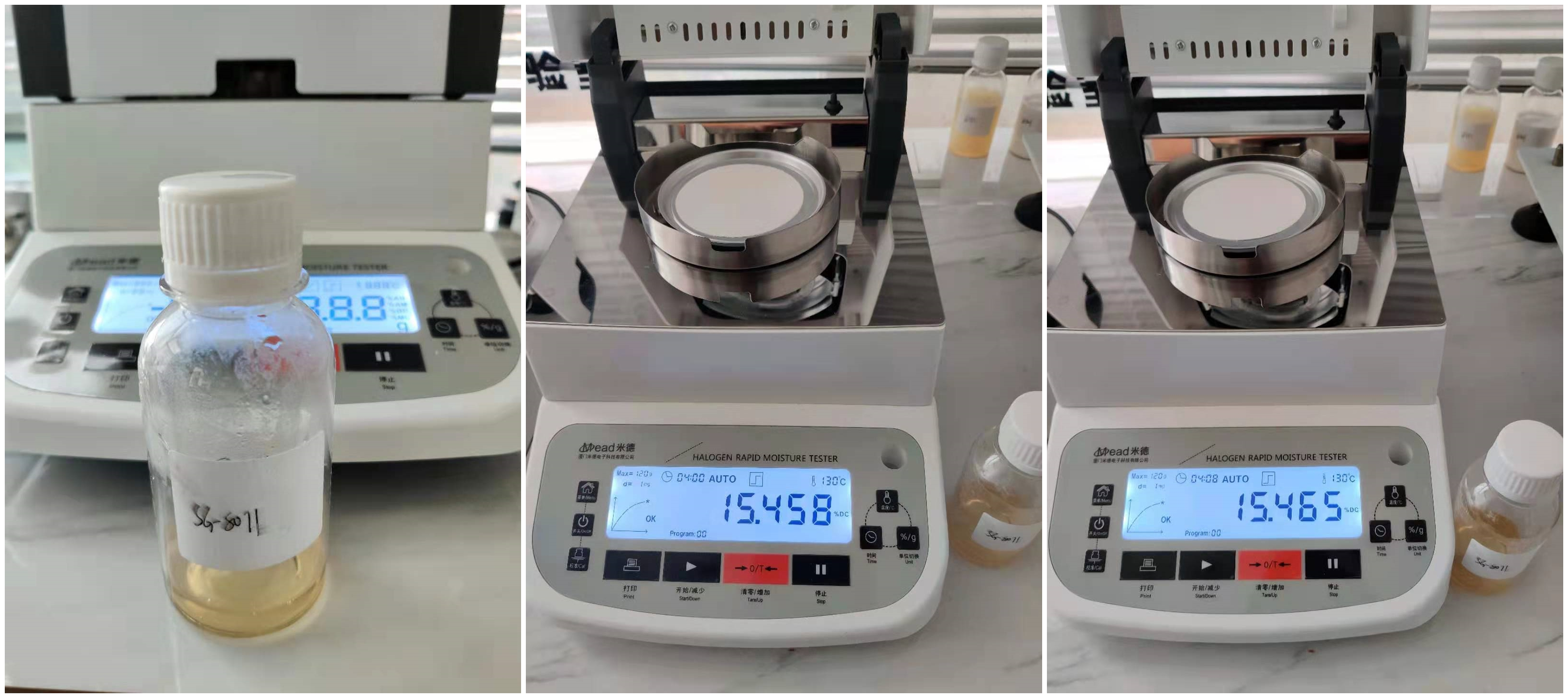 3.7、如果新加入的卡爾費(fèi)休試劑顏色顯示為淡黃色,表示試劑已經(jīng)吸潮,儀器界面中間不會(huì)顯示過碘,而是顯示“正在穩(wěn)定過正中,請(qǐng)等待”,此時(shí)不需要加水,等待儀器電解至平衡,顯示正常狀態(tài)即可。