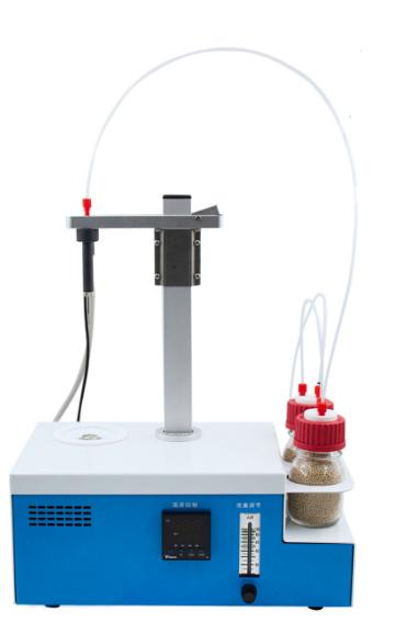 - 操作方便,用戶只需要設(shè)置合適的溫度,合適的流量,把樣品放入事先準(zhǔn)備好的樣品瓶,放入加熱器,然后把傳輸針扎入樣品瓶的硅膠墊,在儀器上點(diǎn)開始測(cè)量即可。