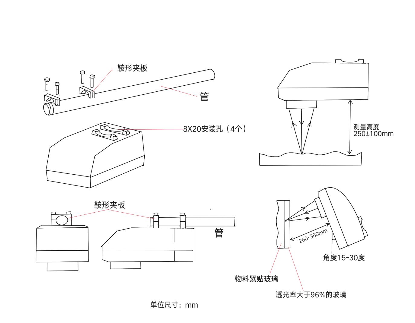 | 安裝支架 | 根據(jù)工況自行定制,安裝圓管直徑25-32mm |