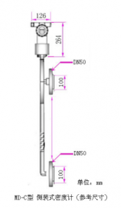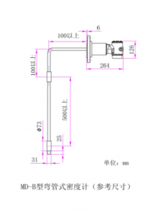 1: 直接式?在線液體密度計(jì)傳感器部分間距最少為200mm,直徑為50mm, 現(xiàn)場(chǎng)不能小于這些尺寸安裝,如選擇彎曲型密度計(jì),請(qǐng)測(cè)量好可以伸進(jìn)管內(nèi)的法蘭和長(zhǎng)度尺寸.